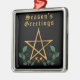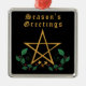 Celebrate the holiday season with a touch of sacred symbolism and seasonal magic with this square metal Christmas ornament featuring a striking pentacle surrounded by elegant winter leaves and berries, all under the festive words “Season’s Greetings.” Designed to blend the warmth of the holidays with spiritual meaning, this ornament offers a beautiful way to honour both tradition and personal belief. The pentacle, a timeless symbol of unity and protection, is centred in this unique design, making it ideal for those who practice Wicca, follow pagan paths, or simply resonate with goddess energy and earth-based spirituality. It’s a wonderful piece of holiday decor that brings together the mystical and the merry, perfect for trimming your tree or enhancing a seasonal altar.