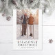 Seasons Greetings editable type with illustrated poinsettias flanking. Customise further to add more text or more photos to the back side. Also available in non foil
