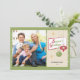 This 1950's style Christmas greeting features a photo on the front. The design uses red and olive green, two retro Christmas tree ornaments and gold stars, and the text: Season's Greetings. Custom text, on the back, allows you to add your own personal message.