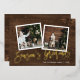Affordable custom printed photo greeting cards with simple templates for customisation. This rustic chic design features a 2 photo template with real gold foil script text on a wood-look background. Personalise it with your photos, family name, the year or other custom text. Reverse side has space for additional photos and text. Use the design tools to change the text fonts and colours, add more photos and create a unique one of a kind holiday photo card design.