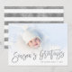 Affordable custom printed holiday photo cards with simple templates for customisation. This stylish modern design features faux silver foil script Season's Greetings typography overlaid on your full bleed photo. Personalise it with your photos, family name, the year or other custom text. Please note that the faux foil is part of the printed design - the cards will not have real metallic foil. Reverse side has a faux foil stripe pattern or use the space for additional photos and text. Use the design tools to change the text fonts and colours, add more photos and create a unique one of a kind holiday photo card design.