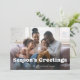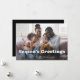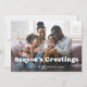 This simple and stylish photo card features a whimsical, boho white text overlay that says "Season's Greetings", with room for your favourite personal photo. The back of the card is black.