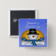 Season's Greetings Snowman Button features a sky blue background with falling snowflakes and a adorable snowman dressed in blue with a black top hat. Decorative White text is Season's Greetings. Perfect gift for Christmas stocking stuffers.