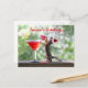 A squirrel wearing a Santa hat sips a cocktail from a straw with "Season's Greetings" written in script above. An original photograph for you squirrel lovers out there!