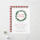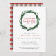 Seasons greetings watercolor floral/foliage party invitation. Winter themed watercolor wreath holiday party invitation. Check tartan backer. A modern take on traditional red and green Christmas.