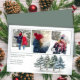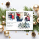 This design features a season's greeting Christmas holiday multi-photo collage card, elegant foliage, botanical winter, one photo template, woodland pine trees, simple greenery forest, watercolor blue-green style, a rustic country theme, and a Christmas holiday calligraphy script greeting card.