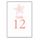 Decorate your wedding tables with these simple double-sided watery beach style portrait wedding table number cards in coral pink orange and white. A great idea to help guests find their seats at a beach themed or coastal style wedding or cruise. You must change the number to each number that you need and add them to your cart, one at a time. Quantity discounts may apply once you add all the items to your cart. If you have any questions or need help or other wedding items in this style please contact me. This simple design would also work well to add table numbers to any special function water or sea / beach meal venue or special sit down fine dinning event. Original graphic drawing by Sarah Trett.
