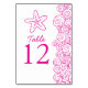 Seastar waves pink beach Wedding table numbers