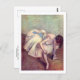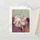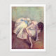 A postcard with the pastel portrait, Seated Dancer (c. 1881-1883), by Edgar Degas (1834-1917). A ballet dancer in a chair with a white dress and blue ribbon. Degas was a French Impressionist artist, noted for his depiction of ballerinas.