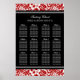 Elegant and contemporary customizable twelve table 96 guest seating seating chart for wedding in modern red, black and white classic floral damask vintage pattern. Customize with your guests name to make a unique seating chart for your wedding. Contact us for a custom chart for a different number of guests.