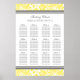 Elegant and contemporary customisable twelve table 96 guest seating seating chart for wedding in modern bright lemon yellow, grey and white classic floral damask vintage pattern. Customise with your guests name to make a unique seating chart for your wedding. Contact us for a custom chart for a different number of guests.
