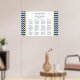 Elegant and contemporary customisable twelve table seating chart for wedding in modern dark navy blue, bright yellow and white fun and retro chevron zigzags stripes pattern. Customise with your guests name to make a unique seating chart for your wedding.