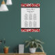 Elegant and contemporary customisable six table 60 guests seating chart for wedding in modern red, black and white classic floral damask vintage pattern. Customise with your guests name to make a unique seating chart for your wedding. Contact us for a custom chart for a different number of guests.