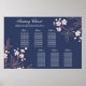 Elegant and rustic customisable six table seating chart for wedding in modern dark navy blue, white and peach orange pink vintage flowers pattern. Customise with your guests name to make a unique seating chart for your wedding.