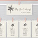 Minimalist Palm Tree Destination Wedding Table Seating Charts Header Card. All the texts are pre-arranged for you to personalise easily and quickly with your own details.