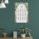 This beautifully designed wedding seating chart blends the elegance of Art Nouveau with a vintage floral motif. Featuring intricate golden accents intertwined with lush greenery and delicate white flowers, this foam board seating chart provides a stunning way to guide your guests to their seats. The luxurious colour palette of ivory, forest green, and gold complements a classic or garden-themed wedding. The centerpiece showcases a personalised monogram framed by a wreath, adding a touch of refined elegance. Perfect for couples who love vintage, nature-inspired aesthetics, this seating chart ensures your special day is beautifully organised.