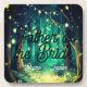 A beautiful evening wedding, engagement, or anniversary with a forest path adorned with fairy lights in the trees, creating a stunning backdrop. A gentle mist lingers in the background of the forest, with countless trees and lights hanging gracefully from their branches.