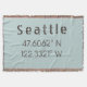 Seattle longitude and latitude coordinates in modern urban grey font on light blue background