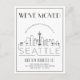 A unique modern deco-style moving announcement postcard for the beautiful city of Seattle, Washington. This card features a stylised illustration of the city's unique skyline with its name underneath. This is followed by your address information in a matching open-lined style. All individual elements of the card are unlocked so feel free to change or add any details necessary by using the customisation function.