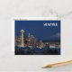 Postcard is shown with a photo print of the night skyline of Seattle.