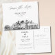 Modern Seattle black and white save the date postcard invitation on matte paper. The front showcases a stunning sketch, setting the perfect tone for your wedding day. Add customise the text to make it your own. Enter the Zazzle design tool for additional design customisations. Automatically comes on matte paper. Adjust to semi-gloss if you prefer.
