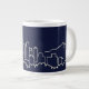 This design features a hand drawn sketch of the Seattle skyline on a dark blue background.