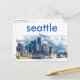 The beautiful Seattle skyline is photographed from the Puget Sound on a picturesque day full of billowing clouds. This postcard is available to customise, so feel feel to add your own text! Photo: Home Planet Images