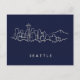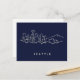 This design features a hand drawn sketch of the Seattle skyline on a dark blue background.