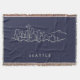 This design features a hand drawn sketch of the Seattle skyline on a dark blue background.