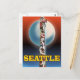 Seattle Totem pole vintage style travel poster of a beautiful old Totem infront of a large full Moon.
