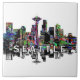 A street-style work of art that features the city of Seattle, Washington covered in graffiti. Below the skyline is reflected in black. Great for DIY home decor projects or framed as art.