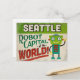 A funny Seattle Washington vintage travel postcard featuring a friendly robot with fun retro style text that says, "Seattle, Robot Capital of the world!"