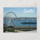 The Seattle waterfront on a sunny day is a beautiful thing! In this photo, the Bremerton ferry is arriving across the water of Elliott Bay, facing the Seattle Great Wheel on the left. Blue skies are reflected in the blue water of Puget Sound. In the foreground is the roof of the Seattle Aquarium, and in the background we can see buildings of the harbour and a green bit of West Seattle's hill across the water. This shot was taken from Pike Place Market, above the waterfront. Photo copyright Gail Storrs 2014.