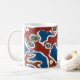 White mug decorated with a screenprinted pattern of seaweed.