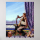 Sebell, Journeyman Harper and Robinton's protégé, is practicing his harp sitting in one of the wide windows of Harper Hall. His firelizard, little gold Kimi, is snoozing next to his knee, lulled to sleep by the music. Around him are instruments, cases, and sheet music. This is another image from "The People of Pern", painted to Anne McCaffrey's specifications.