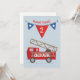 Celebrate your little hero's second birthday in style with our "2nd Birthday Boy Invitation With Firetruck." This charming card features a vibrant red fire engine, adorned with playful flags and pennants. The customisable name adds a personal touch, making it a special keepsake. The light blue background with white dots sets a joyful mood for the occasion. It's an invitation that promises fun and adventure, just like your little one. Make the day unforgettable with this delightful firetruck-themed invitation. Order now and let the celebration begin!