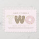 This sweet party invitations features "Two" spelled out in doughnuts decorated with sprinkles and frosting, perfect for your little girl or boy's second birthday party.