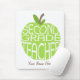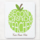 A mousepad for 2nd grade teachers featuring an illustration of a green apple with oversize white text "Second Grade Teacher" in white. Personalise the brown text below with your name.