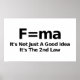 F=ma - It's Not Just A Good Idea It's The Second Law - black and white poster features a humourous fusion of Newton's second law of motion with a vintage law enforcement slogan.