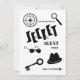 Secret Agent Party Invitation. Hand drawn, black and white, minimalist.