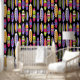 Black ground with Pantone's Fandango Pink, Dahlia Purple, Kelp Forest Green, Citrus Gold, and Lime Punch colorway. Brightly coloured graphic surfboards create this modernistic mid-century modern design. Named after the Secret Beach in Kauai this design is great for that "secret" beach house. This design comes in several colorways. Great for that dorm room.