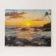 The spectacular setting sun over the Pacific Ocean from the Secret Cove Beach. Turquoise water with lava rocks and palm trees surrounded by vibrant colours. Available in all sizes. The 20 x 30 size is the full image without cropping.