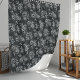 Chic shower curtain in rich, inky off-black features an allover pattern of white flower outline illustrations.