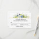 This lovely boho-style wedding RSVP card is designed with delicate wildflowers in mixed watercolor hues of purple, blue, yellow, and white with vine-like greenery and forest twigs as accents. A suite of matching products is available to carry out your garden theme. Edit the sample text with your required response date.