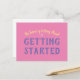 "The Secret of Getting Ahead is Getting Started", inspirational quote. Postcard features pink background with colourful font. Colours are easily customised with Zazzle's easy to use design tool.