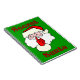 Santa with his finger to his lips and winking on a Christmas green background. Great if your a secret Santa this year!