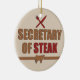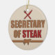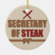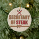 The title "Secretary of Steak" above the title is a knife and fork forming an "X" Below the title is a stripe with the silhouette of a cow in the middle.