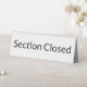 When guests arrive at a restaurant, they expect to navigate the space easily. A sign that states "Section Closed" addresses the potential confusion of diners looking for seating. By clearly marking areas that are unavailable, restaurants can effectively manage guest flow and maintain an organized atmosphere. This simple yet effective solution prevents misunderstandings and enhances overall satisfaction.