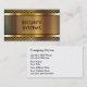 Security business card with modern design that includes simulated gold metal background elements printed on the front and text you can personalise on two sides in this smart design template you can customise. Designed for surveillance systems, alarm system monitoring, or security video cameras and equipment.