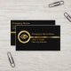 Security business cards you can customise with classy design that includes a metallic like security eye and gold metallic look emblem and text layout you can customise. Designed for themes related to law enforcement, home security, computer security, or private detective.